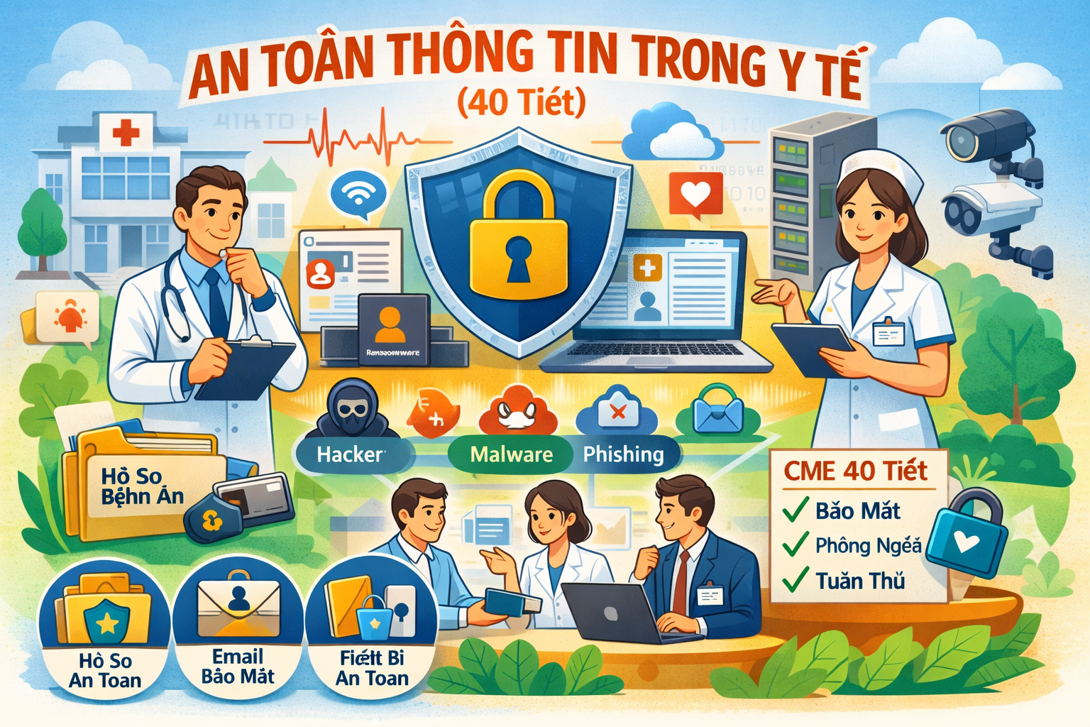 Khóa học “An toàn thông tin trong y tế” được thiết kế nhằm trang bị cho nhân viên y tế từ kiến thức nền tảng đến kỹ năng thực hành về bảo mật thông tin, quản lý hồ sơ bệnh án và xử lý các tình huống thực tế. Nội dung chương trình bám sát thực tiễn tại các cơ sở y tế, kết hợp giữa lý thuyết và thảo luận ca điển hình, giúp học viên dễ áp dụng ngay vào công việc.
