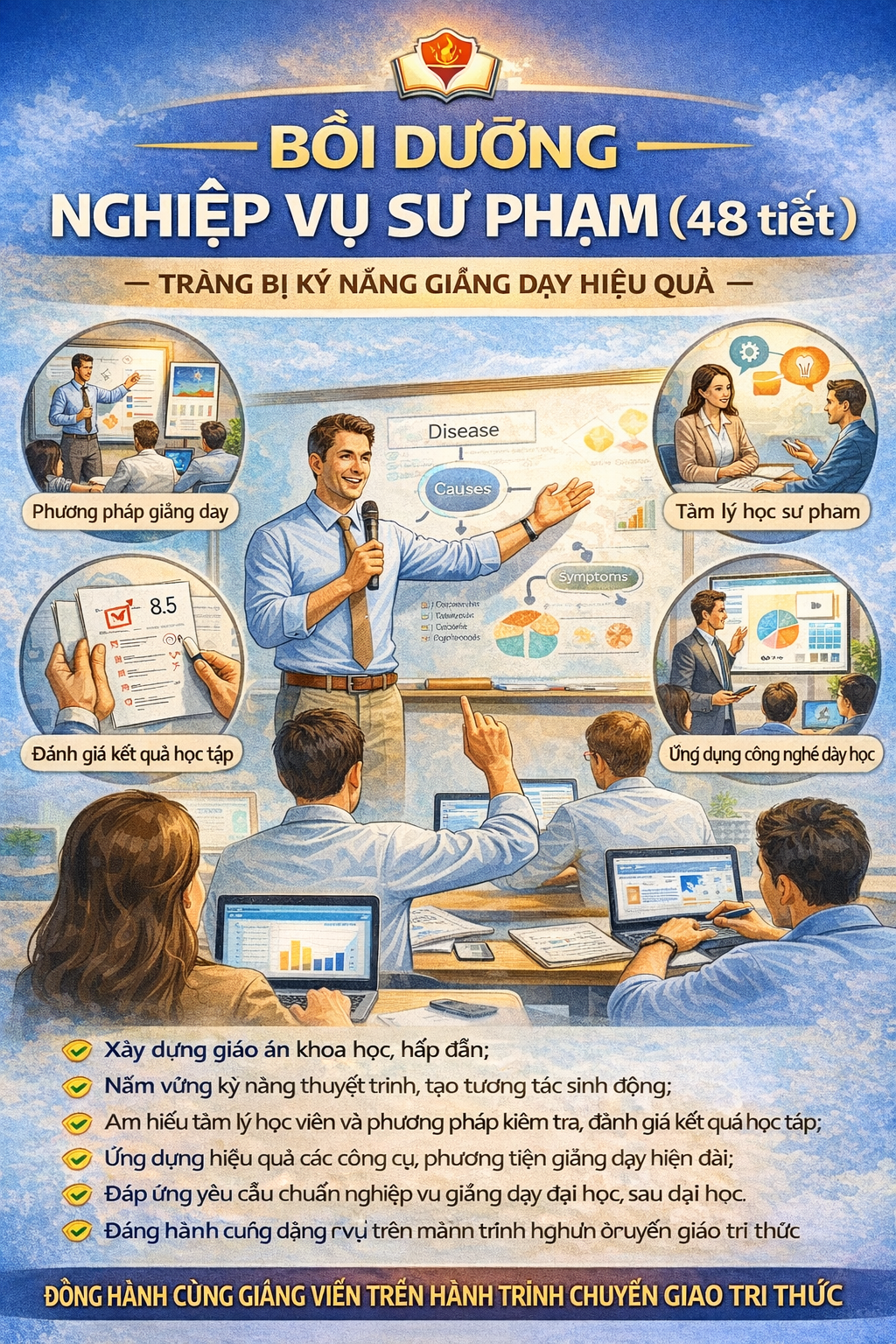 Trong bối cảnh đổi mới giáo dục và nâng cao chất lượng đào tạo nguồn nhân lực y tế, việc trang bị kỹ năng sư phạm cho đội ngũ cán bộ y tế là yêu cầu thiết yếu. Không chỉ giỏi chuyên môn, người giảng dạy cần có phương pháp truyền đạt hiệu quả, khoa học và phù hợp với người học.