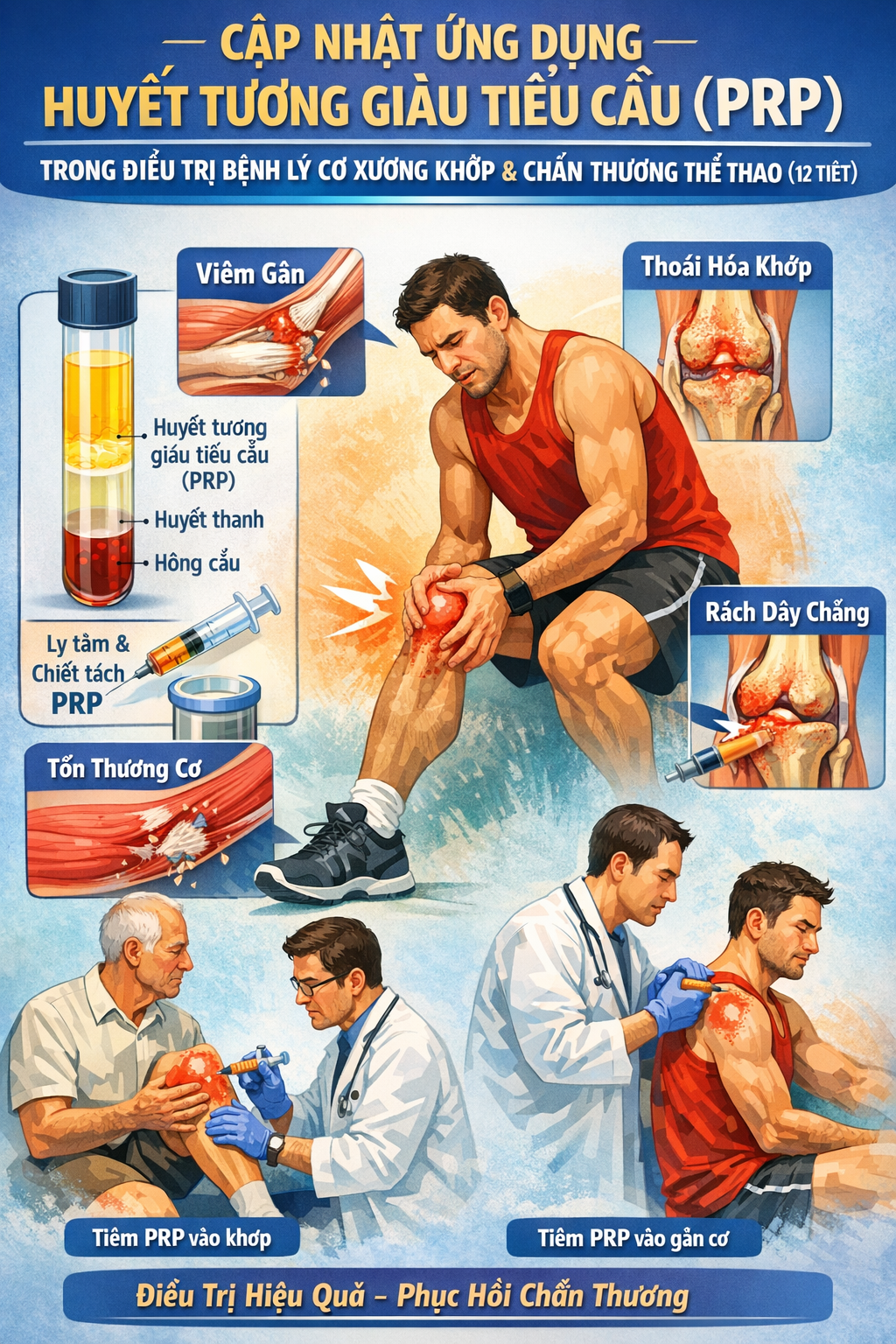 Trong bối cảnh y học hiện đại ngày càng hướng tới các phương pháp điều trị ít xâm lấn, hiệu quả cao và an toàn, liệu pháp huyết tương giàu tiểu cầu (PRP) đã trở thành xu hướng quan trọng trong điều trị bệnh lý cơ xương khớp và chấn thương thể thao.